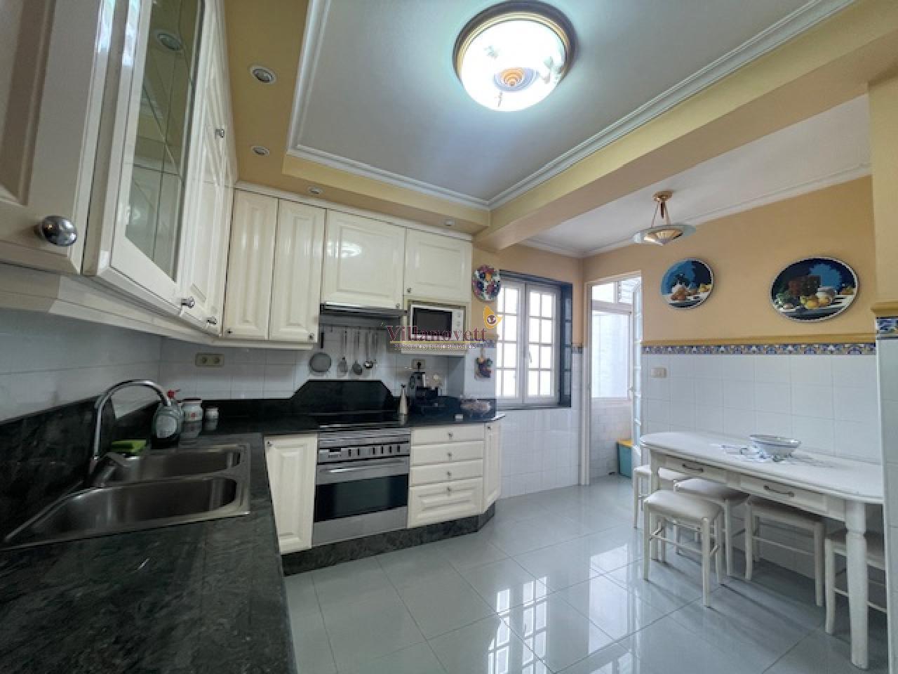 De unos 125 m2 construidos, alto, dispone de un espacioso hall de entrada, un buen salón-comedor con acceso a una terraza de unos 5 m2 (toda acristalada), cuatro dormitorios (dos con armarios empotrados y uno también tiene salida a la terraza), y tiene otro armario empotrado en pasillo, amplia cocina amueblada e independiente con acceso a una pequeña terraza-lavadero y 2 cuartos de baño (uno con bañera y el otro con plato de ducha).